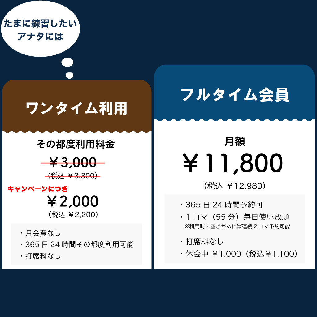 会員様は月額1,100円(税込)の会費で会員資格を保持したままお休み頂けます。
